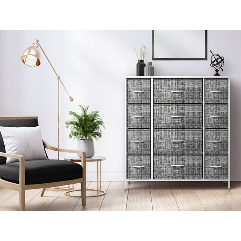 Sorbus 12 Drawer Dresser Organizer Large Bedroom Organization Clothes Storage Drawers Closet Organizer Tall Dresser For Living Room Office Easy Pull Fabric Bins Wooden Handle Gray White Walmart Com